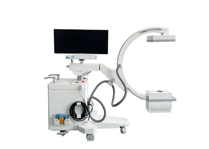 The C-arm machine is powerful and can rotate and move 360 degrees, designed for orthopedics, neurosurgery, pain management, and emergency rooms